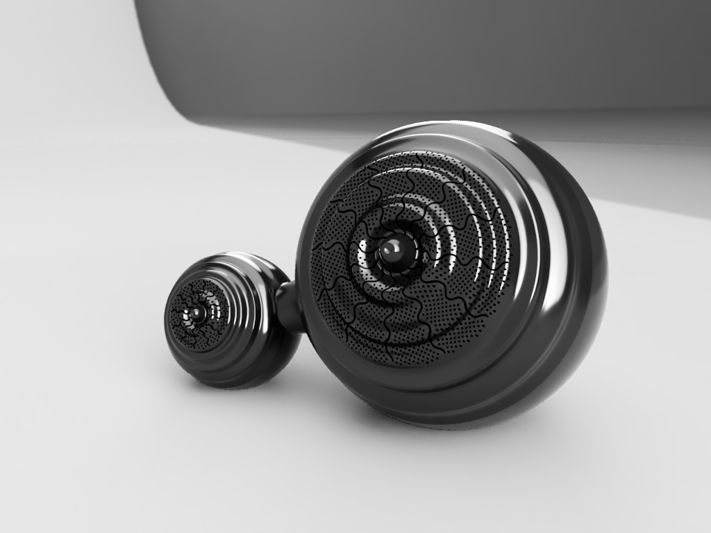 During my internship at Fiberneering, I designed a speaker as part of my graduation project. The concept stemmed from the idea that sound waves travel like ripples on water, so I designed the speaker with textures that mimicked this natural phenomenon. By integrating two spherical elements, the large one for the woofer and the smaller one for the tweeter, I created a harmonious design. A prototype helped refine the design and its functionality.